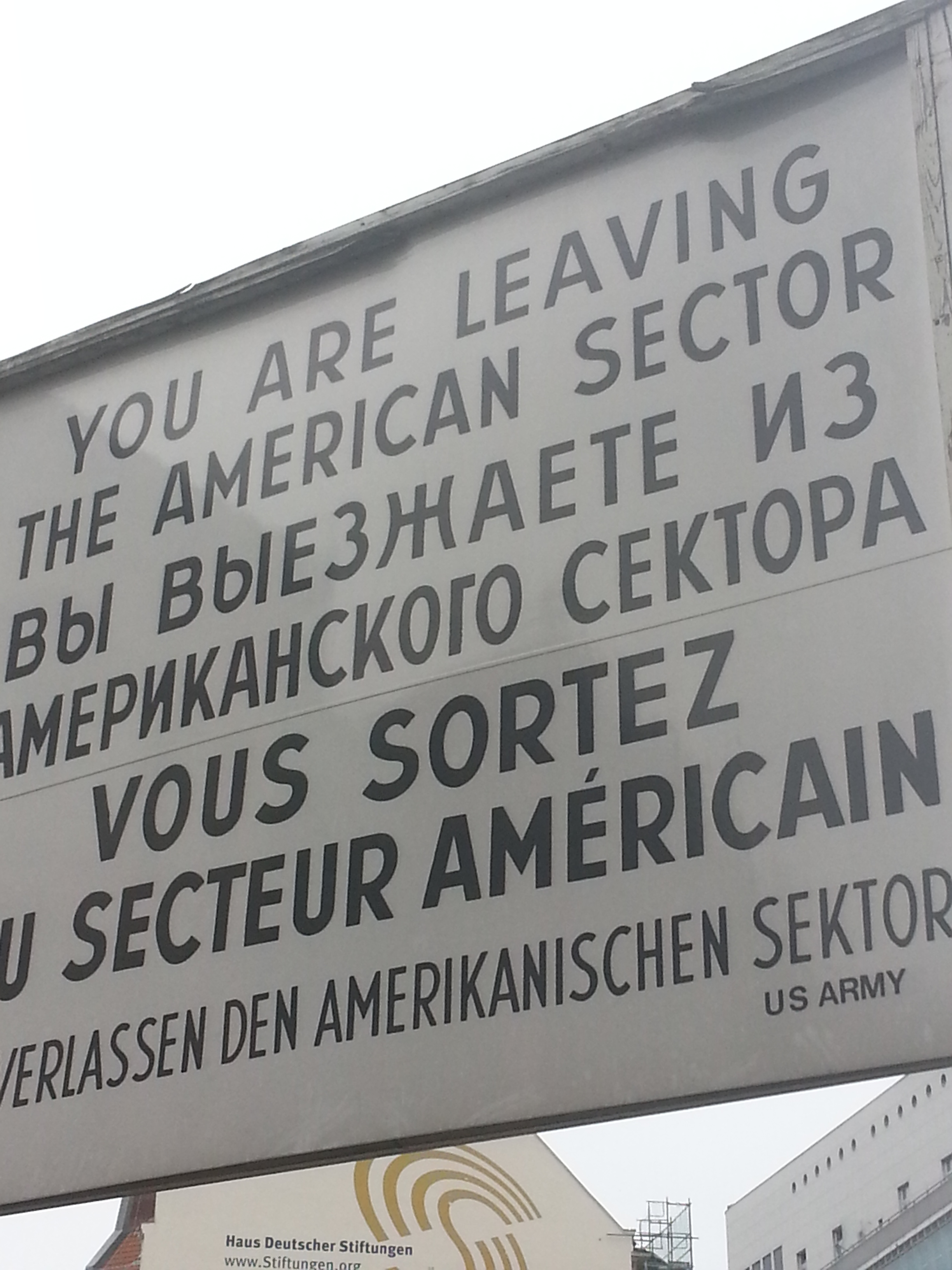 Checkpoint Charlie was the entry point of American soldiers in and out of East Berlin. At the end of World War Two, the Allies split Berlin into four sections: the French, American, Russian and British sectors. Naturally, the Russian sector was what we know as East Berlin and they cut it off from the rest of the Western world. Today, you can see the difference between East and West just by looking at the architecture. The Western side has more modern buildings while the Eastern side has the same industrial style block look.