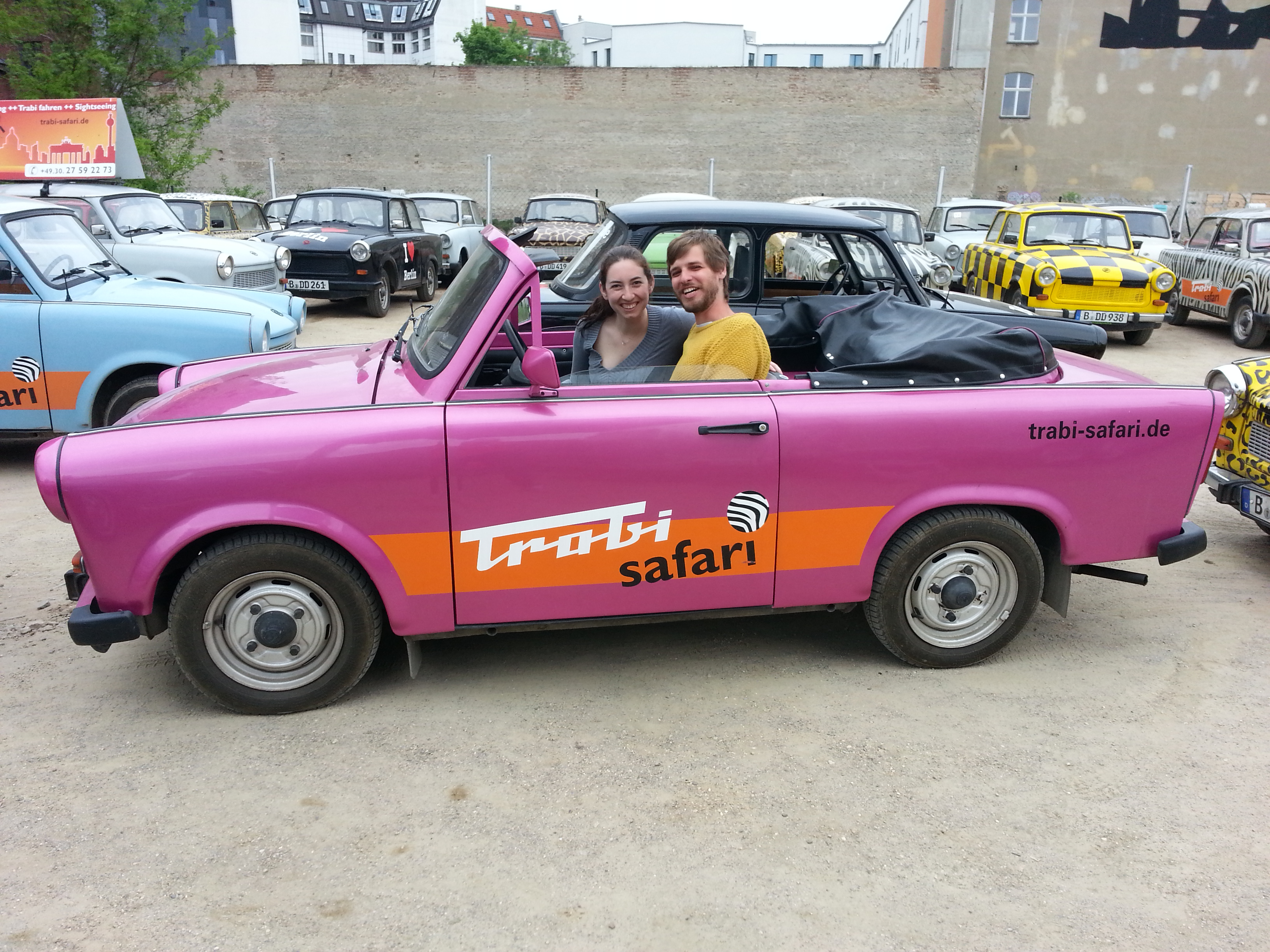 The Trabant was the staple car of East Berlin while the wall was up and quite the basic car!! We ran across Trabi Safari and just had to take advantage of the opportunity. My boyfriend was beyond excited for the opportunity to drive this car–but beware! You need to know how to drive a manual or you can not do this tour. Even my experienced man killed it several times 🙂